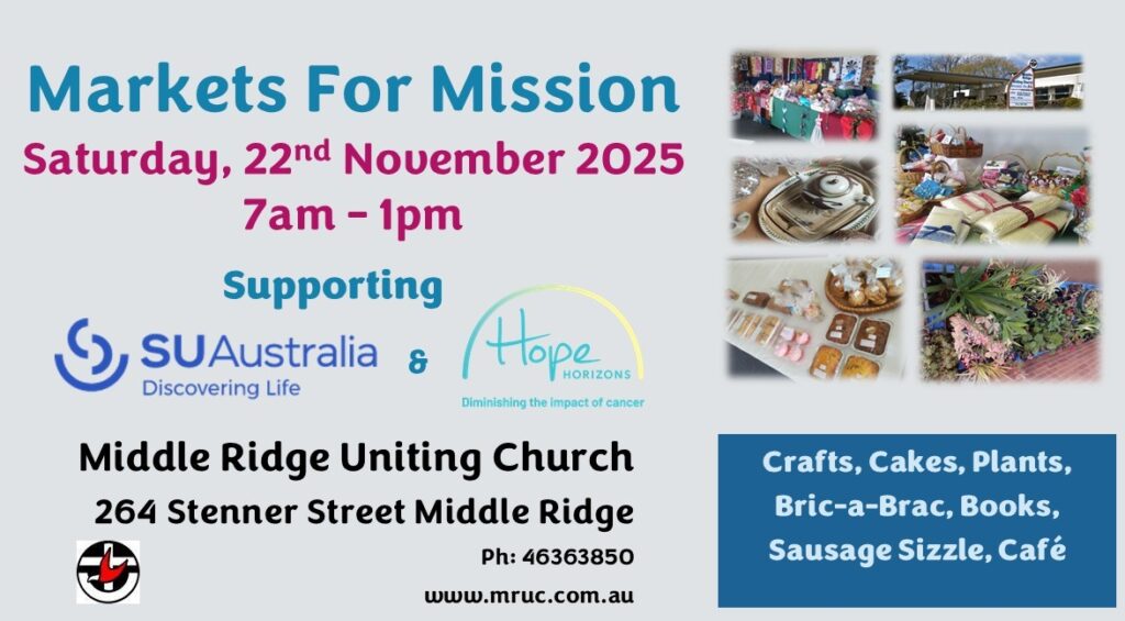 Indoor Markets at Middle Ridge Uniting Church with Crafts, Cakes, Plants, Books, Trash and Treasure, Cafe and Sausage Sizzle.